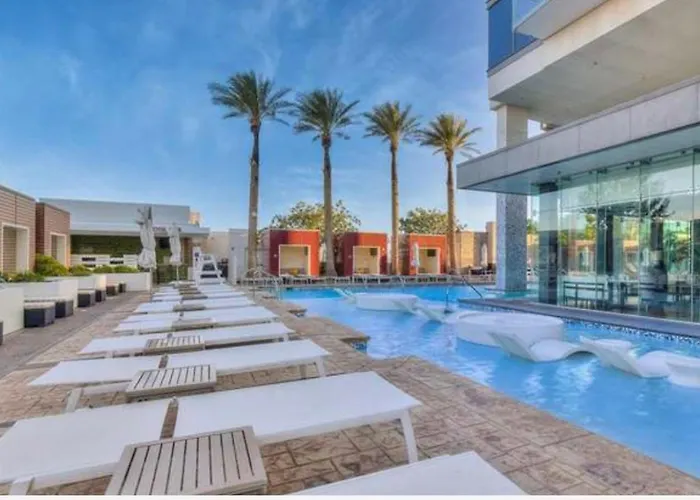 La villa Luxe Condo Balcony Strip View No Resort Fees cuenta con una pequeña cocina, una cafetera/tetera, una nevera y una tostadora. Los huéspedes pueden disfrutar de una comida en el restaurante Cafe 6, situado a 150 metros. El aeropuerto internacional Mccarran de Las Vegas está a 10 minutos en coche de esta propiedad. La villa también incluye un club nocturno y un casino, además de sala de fitness para que los huéspedes se mantengan en forma. La villa Luxe Condo Balcony Strip View No Resort Fees tiene una terraza para relajarse después de un día ajetreado, además de una piscina interior.